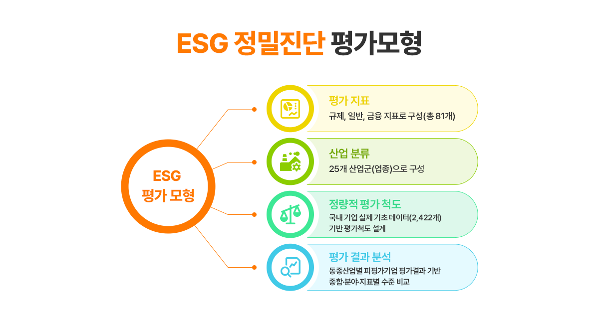 더불어, ESG 진단 결과가 금융 지원과 자연스럽게 연계되기 위한 정량적 기반이 부족했던 점도 중요한 과제로 지적돼 왔습니다. ESG 우수기업에 금리 우대나 대출 혜택을 제공하려는 정책금융기관의 의지와는 별개로, 그 판단을 뒷받침할 수 있는 객관적이고 비교 가능한 평가 구조가 충분히 마련되지 않았기 때문입니다. 이러한 상황에서는 진단과 금융지원 간의 연계가 약해질 수밖에 없으며, 기업 입장에서도 ESG 경영이 곧바로 실질적 혜택으로 이어진다는 확신을 갖기 어려웠습니다.