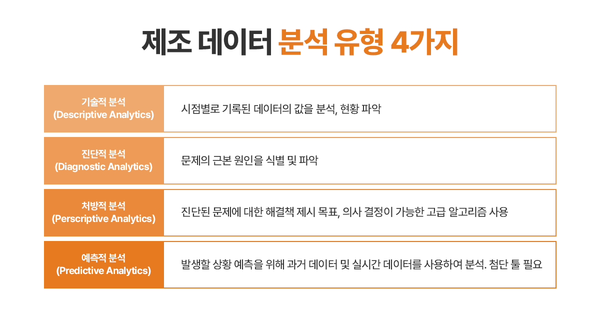 데이터 제조 분석은 네 가지 유형이 있으며, 분석 출력은 사용 목적에 따라 다릅니다.
