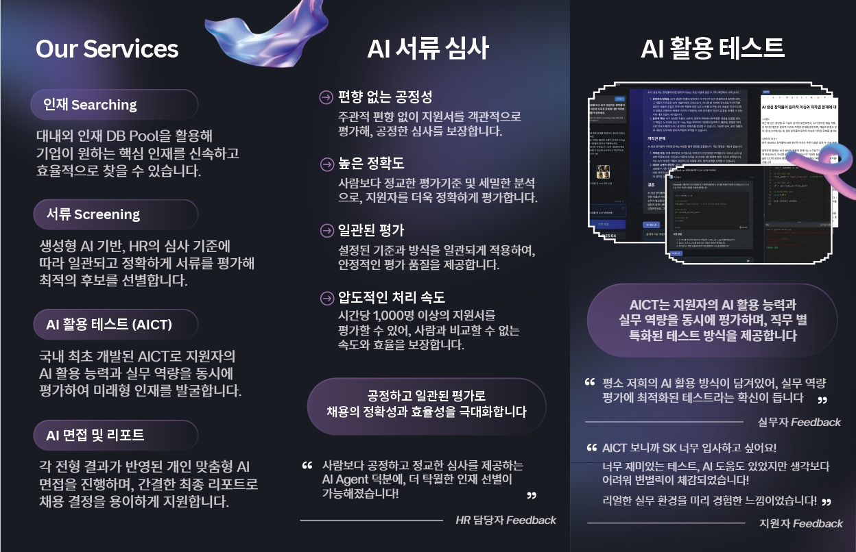 #채용AI #생성형AI #AI면접 #AICT #디지털전환 #채용혁신 #HR테크 #AI스크리닝 #AI채용 #AI채용서비스 #SK채용