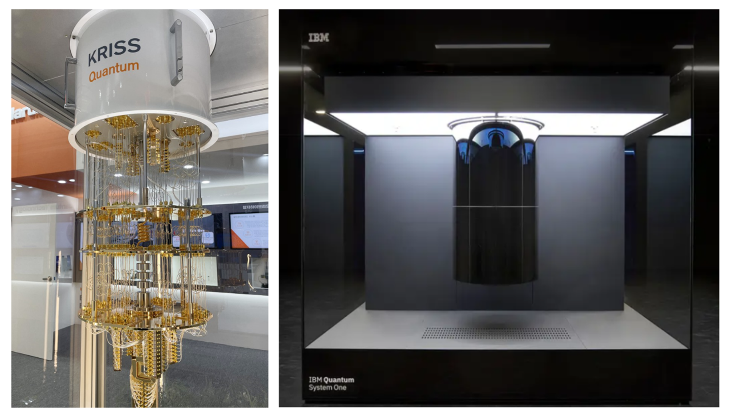 *좌: KRISS에서 개발 중인 50 큐비트 양자컴퓨터 / 우: 연세대에 설치된 IBM 퀀텀 시스템 원