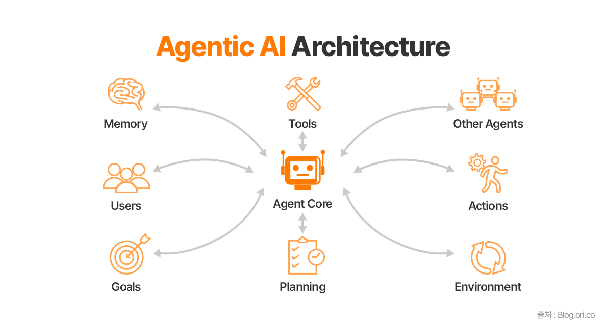 이와 같이 스스로 상황을 인지하고 행동하는 AI 에이전트의 눈부신 발전은 LLM 덕분입니다. AI 에이전트의 핵심이자 ‘두뇌’에 해당하는 LLM은 이제 추론 능력을 갖추고 자동화와 지능적 의사결정이 가능해졌습니다. AI 에이전트의 두뇌와도 같은 LLM이 천문학적인 양의 매개변수(parameter)를 바탕으로 텍스트와 이미지 등 다양한 데이터를 사전 학습(pre-training)하는 과정을 통해 방대한 양의 데이터 속에서 스스로 최적의 패턴을 추론해 내는 능력을 갖추게 되었기 때문입니다.