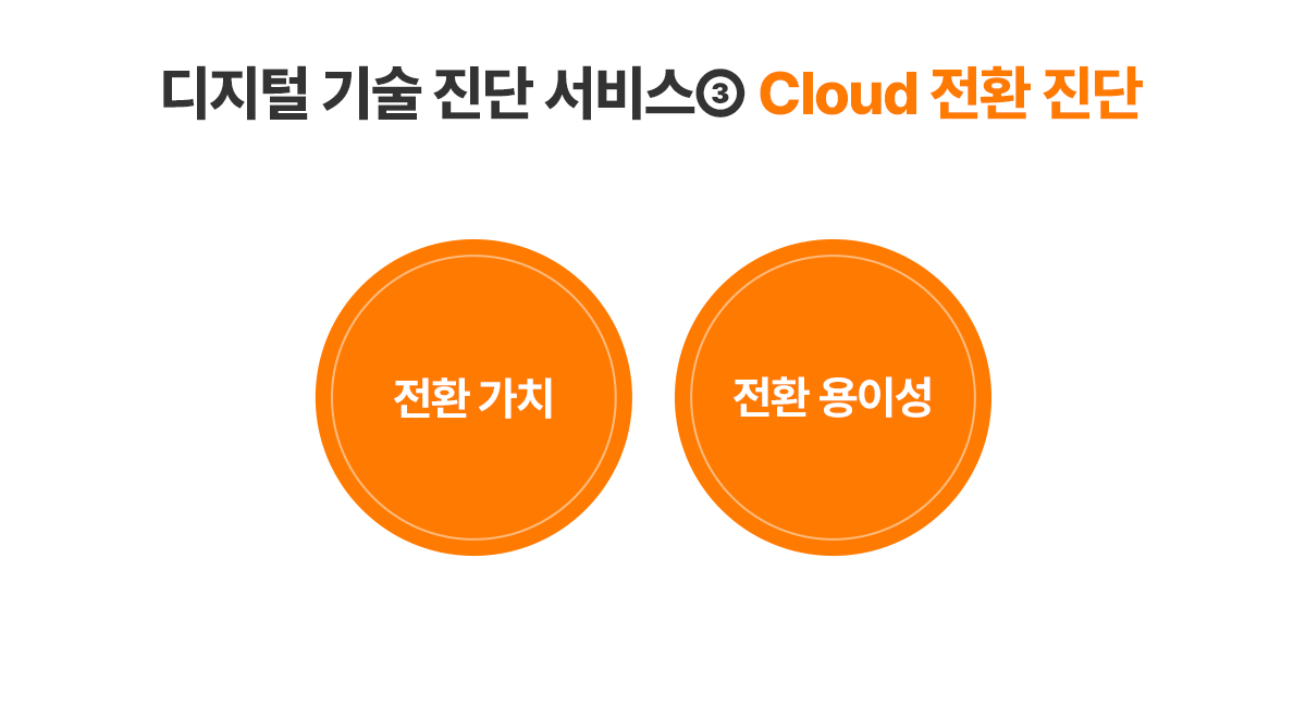 SK AX의 Cloud 전환 진단 서비스는 기업의 시스템, 인프라, 어플리케이션 등이 클라우드 환경으로 전환하기에 적합한지를 검토하고, 클라우드 도입을 통해 얻을 수 있는 비즈니스 가치를 객관적으로 평가하는 것을 목표로 합니다. 이 진단은 전환 가치, 전환 용이성 두 가지 핵심 영역을 중심으로 진행되며, 기업이 클라우드 전환을 결정하는 과정에서 실질적인 방향성을 제공할 수 있도록 설계되었습니다.