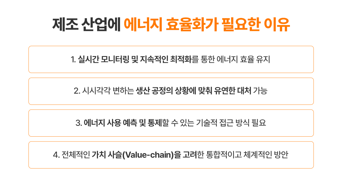 결국 제조업이 당면한 에너지 비용과 생산성 문제를 해결하기 위해서는 더 이상 기존의 방식만으로는 충분하지 않으며, AI 전환을 통한 데이터 기반의 에너지 관리가 반드시 필요한 시점입니다.