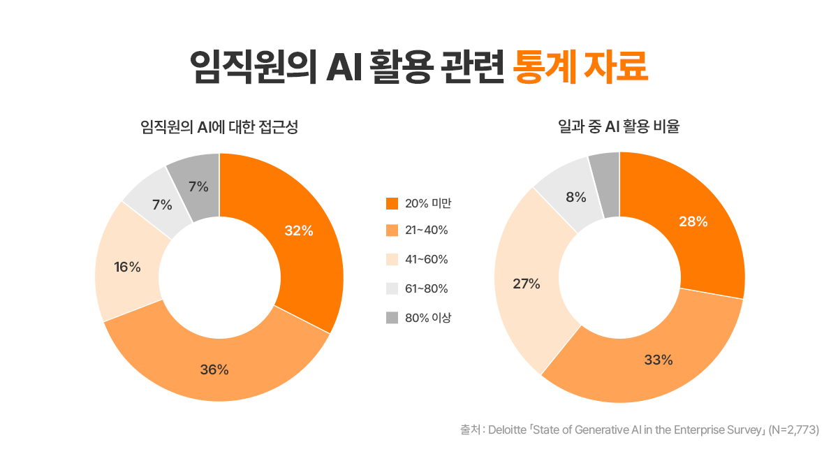 특히 기술 도입 속도보다 조직 내부 변화 속도가 더디다는 점이 디지털 전환의 걸림돌로 자주 지적됩니다. 아무리 우수한 AI 모델을 도입하더라도, 이를 활용할 수 있는 문화와 역량, 그리고 전사적인 수용 태도가 없다면 무용지물입니다. 실제로 응답 기업의 약 60%는 생성형 AI에 접근 가능한 인력이 있음에도, 정작 일상 업무에서 적극적으로 활용하는 직원 비율은 절반에도 미치지 못했습니다.