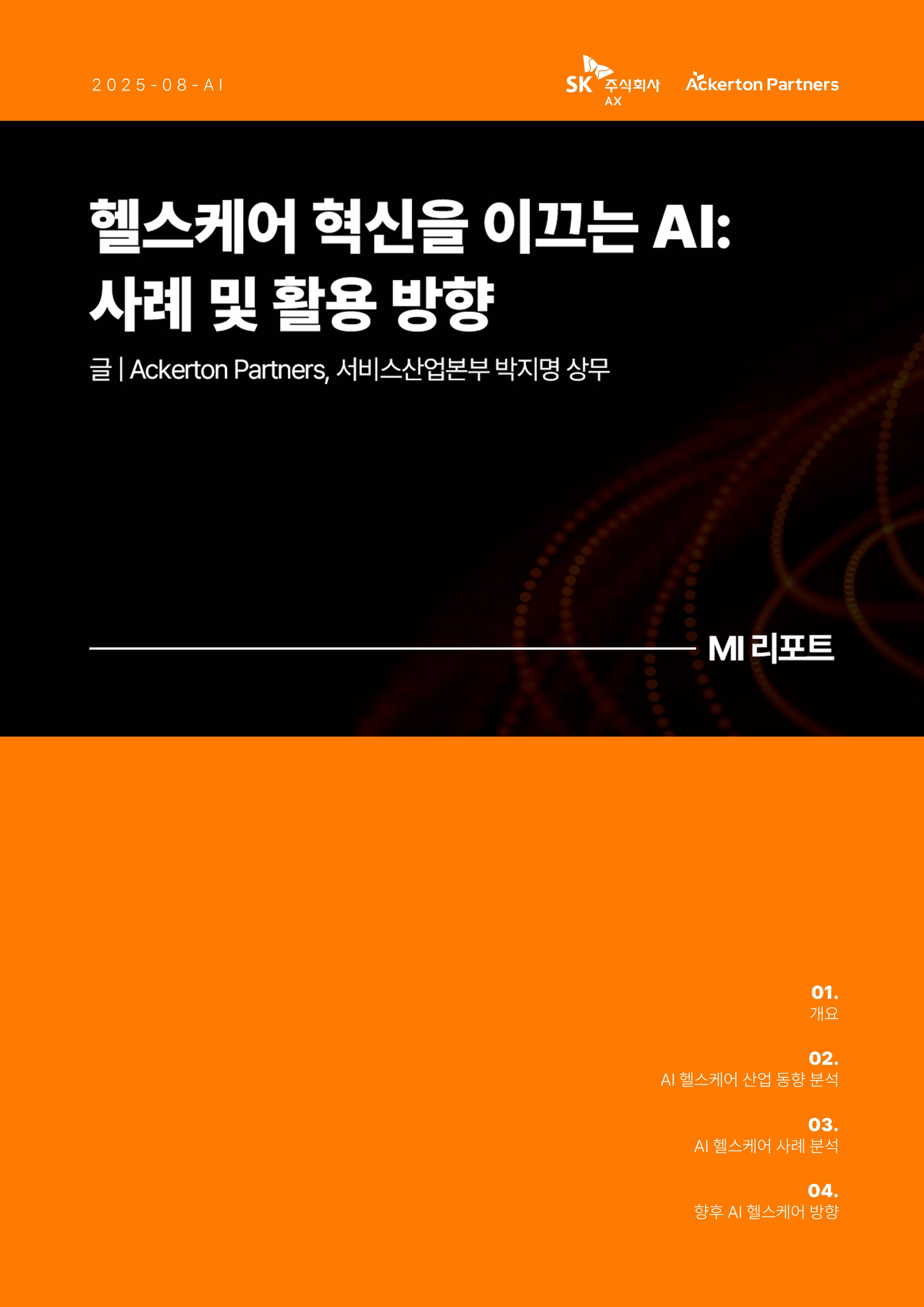 이번 MI리포트에서는 성공적으로 AI 헬스케어를 도입한 기업 사례와, 안전하고 효율적인 미래 의료 환경을 구축하기 위한 실행 전략을 공개합니다.